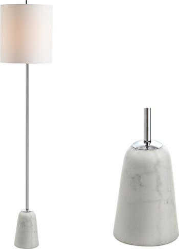 Lincoln 62.5" Marble/Metal LED Floor Lamp, White/Chrome