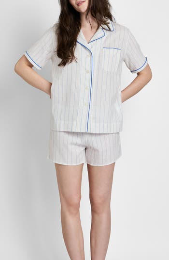 The Corita Set is your go-to for easy days and slow nights — a short-sleeve button-up and elastic-waist shorts in a breathable linen-cotton blend.