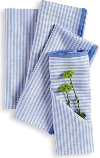 Our Carmine stripe napkins have a knack for being brunch elegant and dinner casual. Crafted of 100% pure linen with timeless stripes and a solid color trim, these napkins add a modern twist to a classic pattern. Available in a variety of stylish colors combinations.