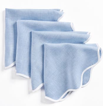 Classic and beautiful, our Giselle scallop edge napkins add undeniable charm to your table. Hand-crafted of 100% pure linen with a tailored trim detail in complimentary colors, this napkin was designed for creating festive special occasions and holiday tables. Style the set alongside our coordinating placemats for a lovely placesetting.