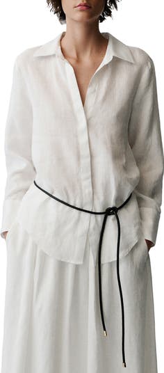 Lightweight linen updates a polished collared shirt finished with a tuckable shirttail hem.