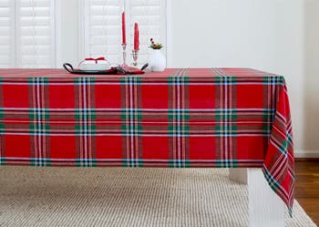 Deck your table in the merriest ways with our red Madras Holiday tablecloth. Made of 100% pure linen, this tablecloth reminds us of a red flannel blanket, perfect for setting a cozy holiday table. For a coordinated table, add our matching dinner napkins. Our tablecloth size charts (for exact measurement): 1) One Size - 54 x 72 Inch, 2) Small - 60 x 90 Inch, 3) Medium - 60 x 102 Inch, 4) Large - 60 x 108 Inch, 5) X-Large - 60 x 120 Inch, 6) XX-Large - 60 x 126 Inch, 7) Medium/Large - 60 x 132 Inch, 8) X-Large/XX-Large - 60 x 140 Inch, 9) X-Large/XX-Large - 60 x 144 Inch, 10) XXX-Large - 60 x 156 Inch.