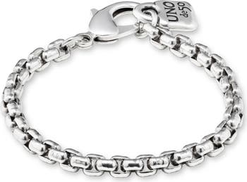 Silver-plated bracelet with carabiner clasp and an unmistakable icon pendant of the brand: the padlock of UNOde50.