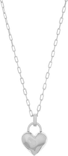 A small molten heart shines from a long paper-clip chain necklace that s lovely to layer or show off solo.
