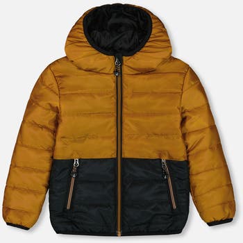 Little Boy s Colorblock Quilted Mid-Season Jacket Brown And Black