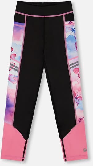 Little Girl s Colorblock Athletic Leggings Black And Multicolored Butterflies