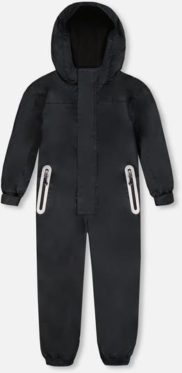 Stay warm and dry on wet, chilly days with our Solid Mid-Season One-Piece Outerwear Black. Made from waterproof and water-repellent recycled fabric, this one-piece features an attached hood, a cozy polar fleece lining, a zip front closure with a windstopper placket, and zipper pockets.