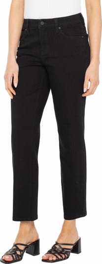 Right in between skinny and straight leg, these slim-cut jeans are fashioned from superstretchy denim in a versatile faded-black wash.