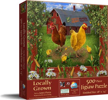 Escape into the peaceful charm of rural life with the Locally Grown 500 Piece Jigsaw Puzzle by SUNSOUT INC. This exquisitely crafted puzzle, featuring the vibrant artwork of James Piazza, transports you to a tranquil farm setting right in your living room. Each precision-cut piece, made from high-quality recycled cardboard and soy-based inks, interlocks seamlessly, underscoring SUNSOUT s commitment to eco-friendly craftsmanship and durability. Proudly made in the USA, this delightful puzzle affirms high manufacturing standards and supports local artisans. James Piazza s vivid and fully licensed artwork, capturing the essence of country life in rich colors and intricate details, makes it a standout piece. The box doubles as a full-color guide for puzzle assembly and a beautiful display piece, adding an artistic touch to your collection. SunsOut, a proud woman-owned company, is a testament to the resilience of small businesses, and purchasing this puzzle supports a legacy of creativity, community, and quality. Experience the joy of piecing together a captivating scene and indulge in the serene beauty of nature with this environmentally conscious and beautifully rendered puzzle.