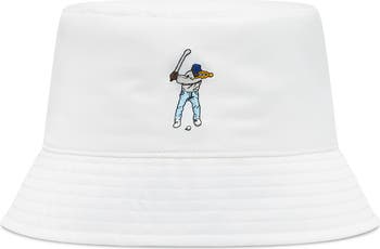 Durable nylon sets the stage for the front embroidery where a golfer goes for the green and turns a classic bucket hat into a conversation starter.