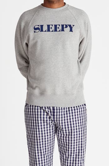 This sweatshirt is perfect for layering while lounging, with "SLEEPY" on the front and "JONES" printed on the back.