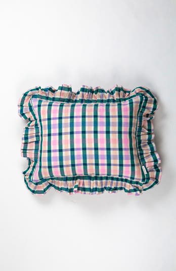 Lola Plaid Ruffle Handwoven Cotton Throw Pillow