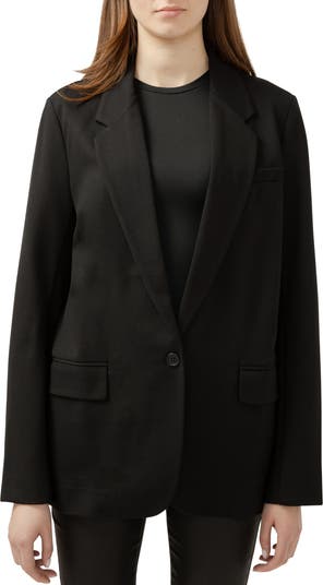 Shape-retaining ponte fabric makes traveling easy in this longline blazer that s full of desk-to-dinner polish.