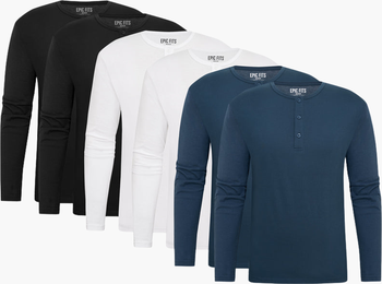 - Pack of 6 premium mid-weight ultra-soft long sleeve Henley shirts