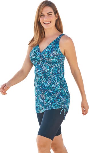 This tankini blends feminine and flirty looks with a customizable fit every time you wear it. A knotted V-neck and ruching offer an elegant touchd and the adjustable side ties let you tailor to your preferred length and coverage. Sewn-in bra cups.