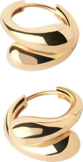 Modern huggie earrings with asymmetric design featuring two overlapping drop-shaped motifs
