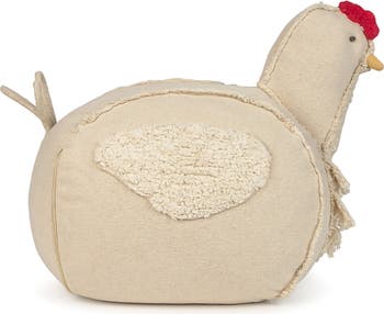 Say hi to Mamma Chicken! This chicken-shaped pouf from our Farm collection is as playful as it is practical! Made from natural cotton canvas, it features fringes that mimic a chicken s plumage. With small pockets on the sides, it’s perfect for little ones to store their treasures. A cord tail is attached, adding charm while also serving as a handle for easy movement. Handcrafted with care, this pouf brings both fun and functionality to any kids room.
