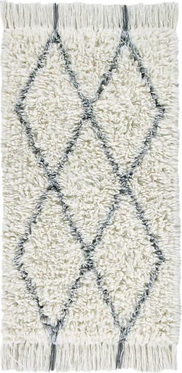 Rectangular wool rug with classic Berber inspired design in soft and fluffy long pile, finished with messy one-knot fringes at edges. A cotton tote bag and a non-slip underlay are included with every rug.