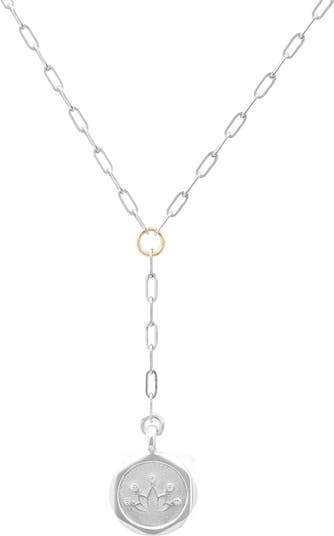 Modern design meets meaningful detail in this sterling silver Y-necklace featuring a diamond-accented lotus medallion. Crafted with a sleek paperclip-style chain and finished with a 14K gold center loop, this versatile piece adds a refined edge to any look. The delicate 1 ¼” drop draws the eye, while the lotus—symbolizing renewal and resilience—adds a thoughtful touch. Perfect for layering or wearing solo, this necklace is a standout addition to your everyday collection.