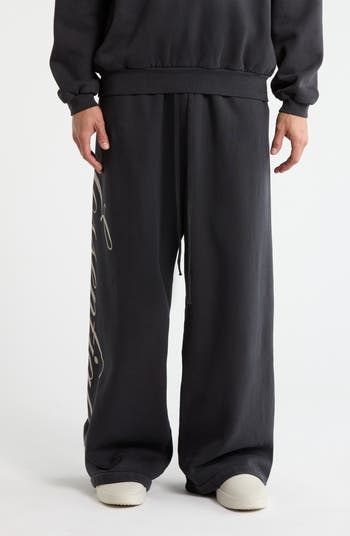 These wide-leg sweatpants are made from heavyweight cotton fleece that s pigment dyed for rich depth of color. Elongated drawcords and a rubberized label finish the look with subtle branding, while a statement-scale Essentials down one leg throws subtlety out the window.