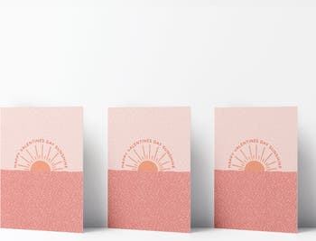 This 3-pack of Love/Friendship/Valentine s Day greeting cards is elegantly illustrated by artist Ingrid Ramus, founder and owner of the Ramus Co brand. Front artwork features "Happy Valentine s Day" pink sunset. The cards are blank inside. All greeting cards are made in the USA on heavyweight uncoated and locally-manufactured card stock. Each card is individually wrapped in PLA sleeves that meet both ASTM D6400 EN 13432 standards. Each card is accompanied by a hand-embossed envelope made with heavyweight 95lb paper and a peel-and-stick flap - no licking envelopes here! All Ramus Co. greeting cards are printed on FSC© and SFI© certified paper sourced from a regional mill that harnesses 66% of its energy from on-site sustainable sources, such as emission-free hydroelectricity and biomass co-generation from wood waste. Additionally, our greeting cards are thoughtfully packaged in bags made from certified compostable PLA material. Husband-and-wife team Calvin and Ingrid Ramus founded Ramus Company in 2019, in New England, USA. Ingrid, the creative designer behind the brand, originates from Mexico, where she cultivated her skills in fashion and textile design. Drawing from her unique and inquisitive perspective on preppy style, Ingrid prolifically designs whimsical yet classic stationery and lifestyle items.