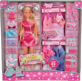 Simba Toys - Steffi Love Mega Fashion Playset - Pretty Steffi Love is always ready for any occasion. Steffi will be a trend setter with this 45 piece fashion set. Some accessories include: sunglasses, multiple outfits, shoes, handbag, and jewelry. Designed for ages 3 years old and up. WARNING: CHOKING HAZARD -- Small parts. Not for children under 3 yrs.