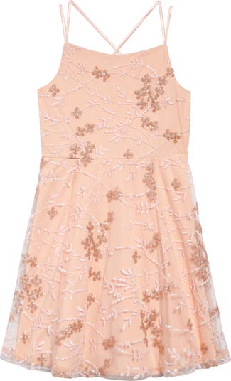 Delicate embroidery adorns this mesh dress that your little trendsetter will adore.