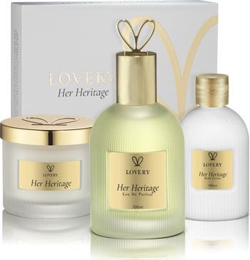Her Heritage Fragrance Gift Set is a timeless elegance of Rome, blending traditional craftsmanship with contemporary edge. This womens fragrance is an haute couture of jasmine flowers and accords, blended with bourbon vanilla making it the most luxurious scent in modern perfumery. Whether you indulge in the lotions or just simply spray the edp or inhaling the luxury scented soy candle, this gift set is sure to please any women and makes for the perfect timeless gifts while being proudly sourced in the USA. Top Notes: Black Current, Pink Pepper, Bergamot Middle Notes: Star Jasmine, White Tea, Rose Petals, Base Notes: Vanilla Been, Sheer Musk, Guaiac Wood Crafted in the heart of Manhattan, this exquisite three-piece fragrance gift set captures the sophistication and spirit of New York City. The Lovery Her Heritage collection is a celebration of refinement and femininity—featuring a radiant Eau de Parfum, a rich Body Lotion, and a mood-setting Soy Candle. Encased in ribbed, gold-accented vessels and presented in a sleek gift box, this set delivers an indulgent experience from the very first glance. This fragrance begins with a bold yet graceful prelude of black currant, pink pepper, and bergamot—a luminous top that commands attention. At its heart blooms a floral bouquet of star jasmine, white tea, and rose petals, an ode to the softness and strength in every woman’s journey. The base leaves a warm and lasting impression with creamy vanilla bean, sensual sheer musk, and grounding guaiac wood. Celebrate your legacy. Pass on the elegance. Her Heritage is yours. Set Includes: • Eau de Parfum (100ml): Her Heritage opens with black currant and bergamot, unfolds into rose petals and white tea, and leaves a trail of musk, vanilla, and guaiac wood. • Body Lotion (100ml): Silky, fast-absorbing, and lightly scented for all-day hydration and fragrance layering. • Soy Candle (4.5oz): Clean-burning and richly aromatic, designed to elevate ambiance with every flicker. Inspired by the golden hour in the city that never sleeps, the Lovery Her Heritage Gift Set is a tribute to modern femininity and timeless sophistication. Expertly crafted in the heart of New York, this gift set is Paraben and Cruelty Free. Her Heritage fragrance is made with skin loving ingredients. Presented in ribbed glass vessels with gold detailing, and nestled in a refined gold and ivory gift box, this set is the ultimate gesture of luxury—for yourself or someone unforgettable.
