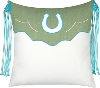 Drawing inspiration from the wide-open spaces and adventurous spirit of the West, this design movement injects a dose of whimsy and vibrancy into your home. Embracing a playful mix of greens, reminiscent of wild meadows, teals and turquoise waters, this pillow reflects a modern interpretation of traditional motifs, bringing a touch of character and heritage.