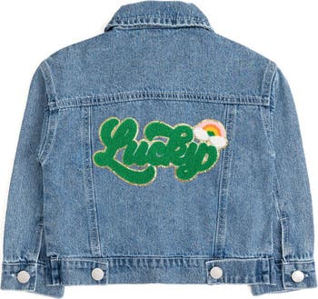 Your little leprechaun will be ready for an adventure in this classic denim jacket, featuring a textured green lucky patch and a tiny rainbow cloud, the coolest way to search for gold at the end of the day!