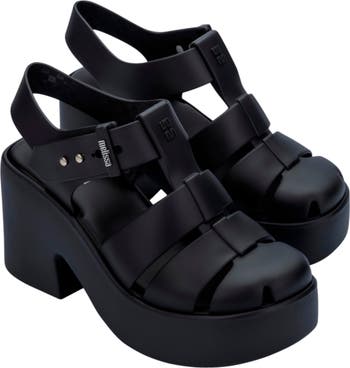 A soaring platform and block heel promote a retro-cool aesthetic on a cushioned fisherman sandal secured with an adjustable buckle closure. A water-resistant finish and the brand s infused fruit scent add a signature flourish.
