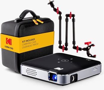 The innovators at KODAK help you look at the big picture with the Luma 150 Portable Pico Projector. With this pico pocket projector, you can enjoy stunning HD video and imaging in the palm of your hand. This DLP pocket projector produces high-quality imaging in a truly small projector. This projector portable will transport you to the fantasy world of your choice with a booming 1.5 W speaker and dazzling 16.7 million color display. Set up the outdoor mini movie projector on a flat surface either indoors or outdoors. This home projector is compatible with today s most popular entertainment devices with a play time of up to 2.5 hours. Simply connect your microSD cards, USB or HDMI to the rechargeable projector without the hassle of complicated buttons and menu screens. Just plug the video projector, play, and experience a pocketful of possibilities. So say goodbye to the cramped gather round, and wow a crowd by adding the Kodak Luma 150 Ultra Mini Projector with Speaker to your cart today!