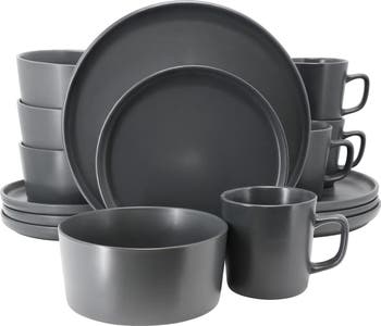 The Elama Luxmatte Dark Grey 16 Piece Dinnerware Set brings style to the table for family and guest to adore. The minimalist design perfectly accents any meal, be it a basic breakfast or a lavish luncheon. Made from a stoneware construction, the set features top quality presentation and durability. Dishwasher safe for easy cleaning and microwave safe for fast heating. This place setting is suitable for any situation be it for casual hangouts or special celebrations.