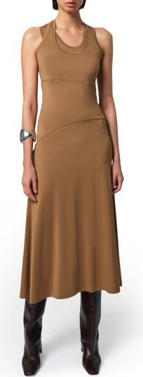 Move with ease wearing this drapey tank maxi crafted from lightweight jersey with comfortable stretch. A layered neckline and a sleek racerback add sporty vibes to this everyday look.