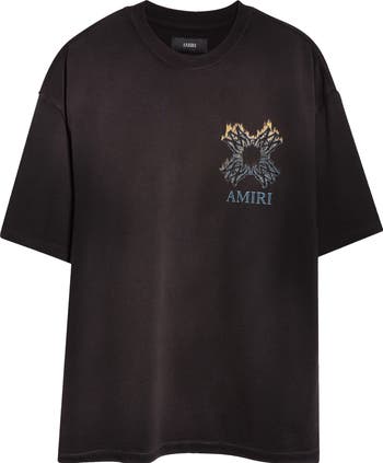 AMIRI heats things up by cleverly using bleach to create a flame effect scorching the iconic MA Quad logo featured on the front and back of this oversized T-shirt cut from breathable cotton with an aged wash.