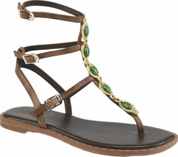 MABUL gladiator sandal in leather with chic stone accents. Perfect for casual outings, beach getaways, and warm-weather adventures.