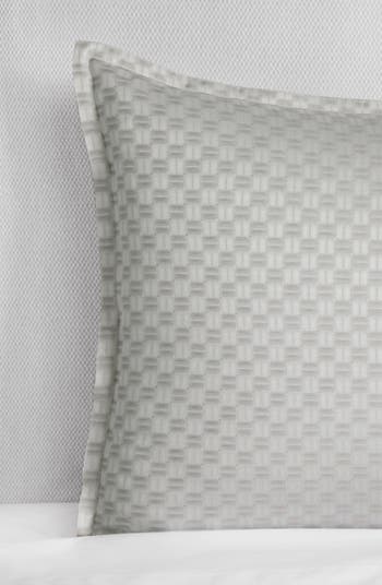 A basket-weave effect brings muted elegance to an Italian-made sham crafted from long-staple cotton.