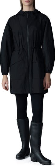 Easily packed along or packed away, this lightweight hooded raincoat made from recycled nylon also packs in a few style features, including balloon sleeves with binding at the cuffs and is totable as a shoulder bag when not in use.