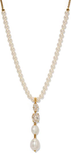 Bring old-world glamour to your ensembles with this elegant frontal necklace showcasing a line of baroque freshwater pearls and cubic zirconia.