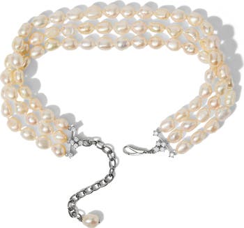 Three strands of organically shaped pearls bring eye-catching shine to an elegant choker necklace that will instantly elevate your look.