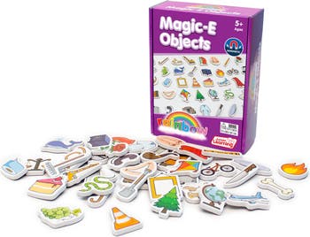 MAGIC-E OBJECTS: MAGNETIC LEARNING FOAM OBJECTS - Rainbow Magic-E Objects is an engaging, hands-on magnetic set designed to help children learn and recognize the Magic E long vowel rule in a fun and interactive way. The set includes 40 magnetic foam objects, each approximately 2 inches in size, that can be used on any magnetic surface or flat area. The pieces are large enough to handle comfortably yet compact for storage and organization. Their durable foam design ensures long-lasting use, even through repeated classroom activities and lessons. Children will enjoy identifying each object and practicing the long vowel sounds in words such as bike, mice, and cone. This activity develops phonics skills, early reading, word-building, and pronunciation while also supporting fine motor skills through handling the foam pieces. Whether used individually or in groups, the set encourages participation and curiosity. By turning phonics practice into a hands-on activity, it keeps learners motivated, focused, and excited about reading while reinforcing foundational literacy skills through play. Perfect for classroom, home, or small group learning, this set provides a tactile and visual method to reinforce the Magic E concept, helping children confidently decode and spell words with long vowel sounds. Whether for structured lessons or informal play, this resource provides endless opportunities to explore phonics, build vocabulary, and strengthen reading confidence in fun, meaningful ways.