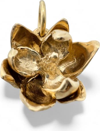 Intricate etching brings eye-catching dimension to a floral charm fashioned from lustrous 14-karat gold.