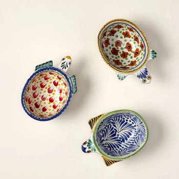 Your chips, dips, and salsas are always crowd-pleasers, but they re guaranteed party-starters when served in these smile-inducing turtles. Created using a Mexican and Spanish pottery technique known as Majolica, which dates back to the 18th century, the festive set brings a burst of colors to meals, parties, or even afternoon snacks.