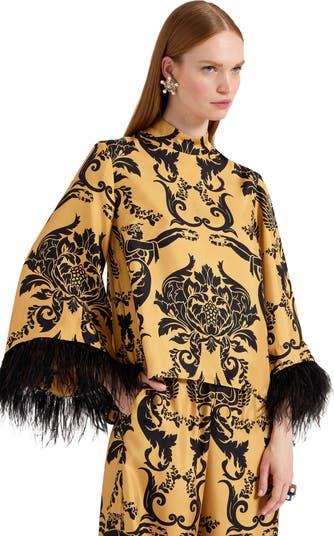 - Composition: 98% Silk 2% Ostrich Feathers
