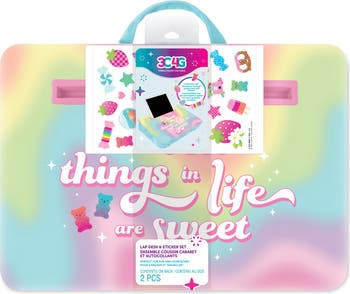 3C4G: LAP DESK STICKER SET - LIFE IS SWEET - Life is sweet when you can transform any location into a tween office! This colorful lap desk is perfect for bringing homework or doodles on the go. Make any place a cozy tween office with this portable lap desk designed with comfortable cushioning, a sturdy handle for easy transport, and a vibrant design. Personalize the lap desk with a sweet set of scratch-and-sniff stickers for extra personalization and scented fun! Focus time can happen anywhere with this lovely and practical desk. A sweet gift idea for tweens, whether for a birthday bash, holiday, or just because! Perfect for creative tweens ages 6+.