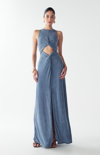 The MALIA MAXI DRESS by ST MRLO is a striking red floor-sweeping design that commands attention with its bold cutout detailing and elegant drape. This sleeveless piece transforms evening elegance with its sophisticated twist-front construction and strategic skin-revealing panels that create a contemporary, refined aesthetic.