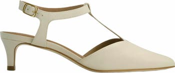 Malta offers a new take on a kitten heel pump. Featuring a t-strap, cut out detail this heel will bring dimension to any look.