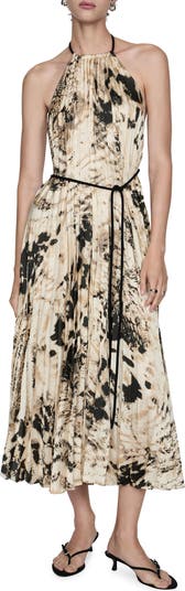 A slender waist tie hugs the frame of this animal-print midi dress designed with a flirty low back.