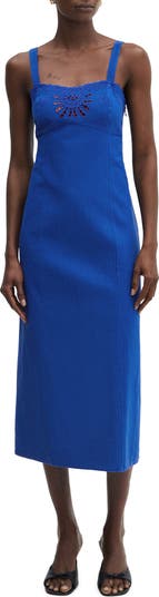 Delicate eyelet adds a grace note to a summery cotton dress cut to a beloved midi length.