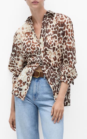 Gorgeous blossoms romance this crisp cotton-poplin button-up cut in a relaxed fit that works whether you tuck it in or wear it loose.